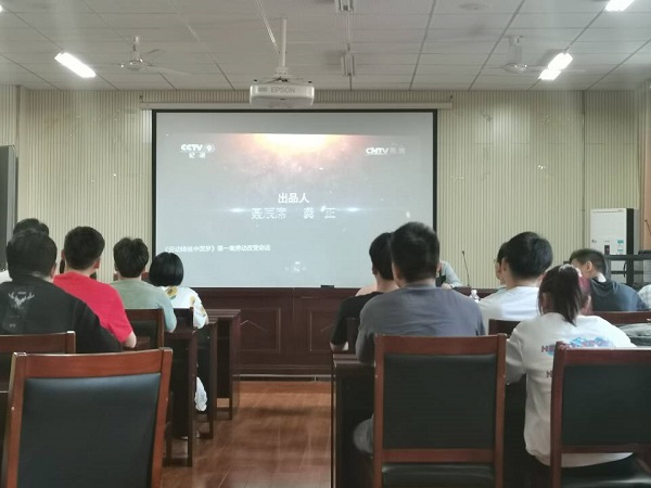 观看劳动宣传片《劳动铸就中国梦》(摄影:朱茹梦)