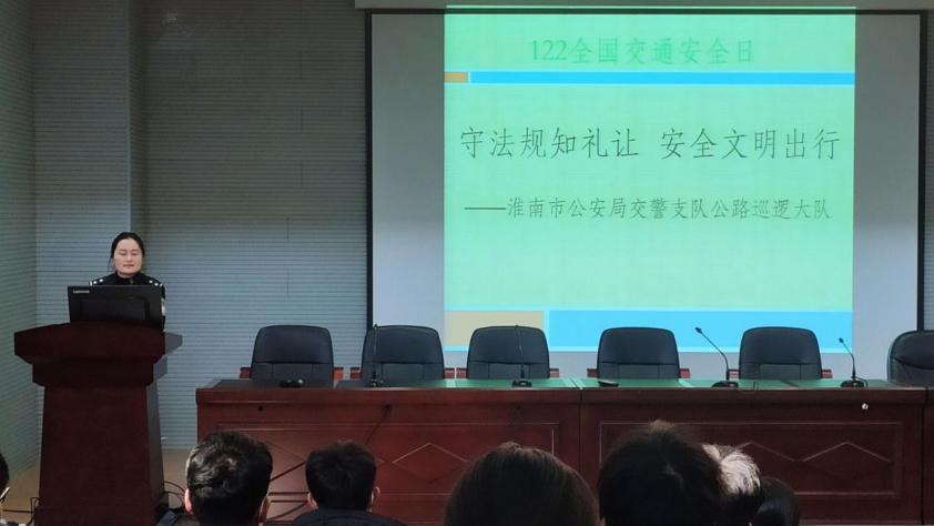校保卫处和矿业工程学院邀请淮南市公安局交警支队公路巡逻大队花芹芹警官为矿业工程学院和力学与光电物理学院150余名师生作“守法知规礼让,安全文明出行”专题讲座,通过一个个交通安全事故案例,让同学们深刻感受到交通安全的重要性,学习了行车行人安全知识,增强了交通安全意识。