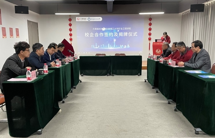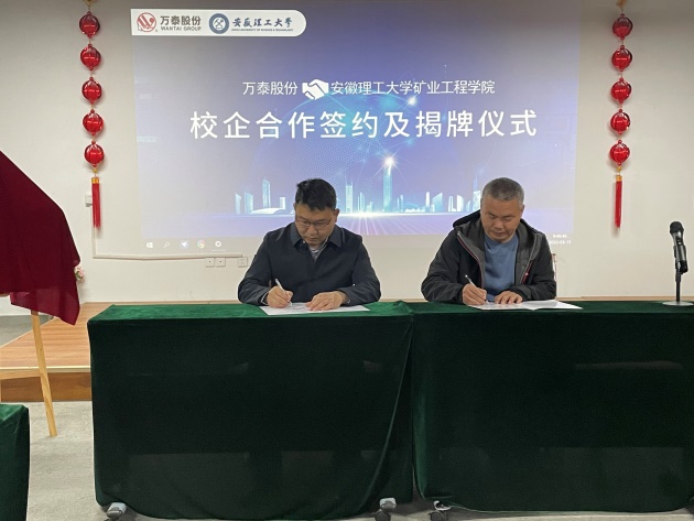张向阳代表矿业工程学院与万泰股份签署了《安徽理工大学教学实习基地共建协议书》,并举行了教学实习基地授牌仪式。