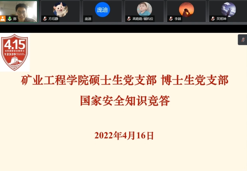 为加大对国家安全法等国家安全相关法律法规的宣传力度,让国家安全这个抽象概念入脑入心,学院硕士生党支部与博士生党支部共同组织开展了国家安全线上知识竞答。双方激烈而又紧张的角逐,充分调动了支部党员学习国家安全知识的积极性,增强了维护国家安全的责任感和使命感,形成了维护国家安全的强大共识和自觉追求。