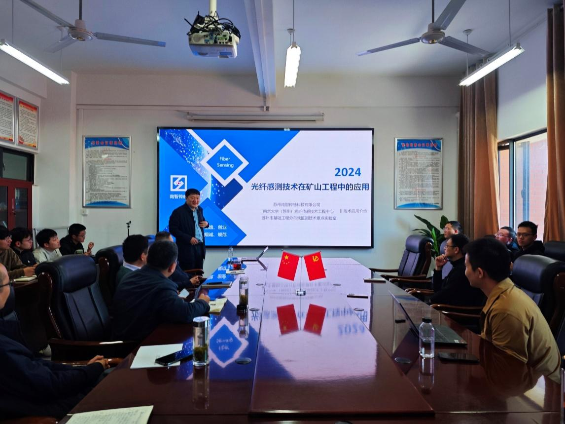 魏广庆围绕大地感知系统和矿山感知工程,分析了地质工程监测的特点和难点,重点介绍了光纤监测技术在矿山工程中的应用;结合生产实际,从光纤的感知原理、安装工艺、数据采集与分析等方面深入浅出作了系统讲解。同时表示,苏州南智传感科技有限公司研发的光纤智能监测系统在巷道支护状态、覆岩层变形、井筒结构、工作面状态等矿山安全监测中拥有广阔的应用前景,希望与矿业工程学院在产学研教方面的合作取得新成绩。