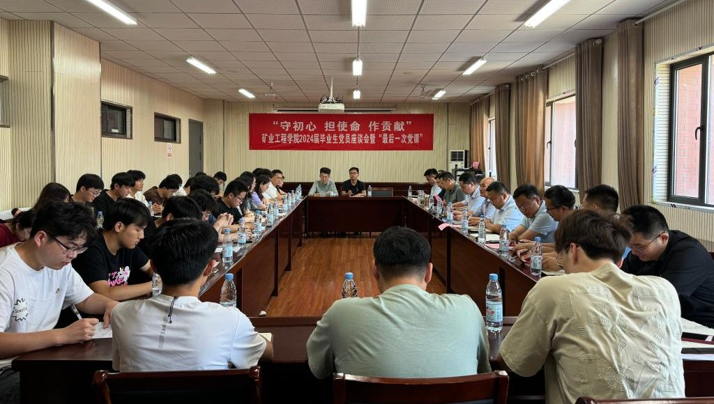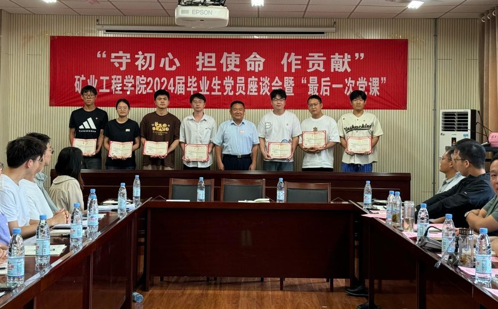 6月12日下午,矿业工程学院在宁远楼A410会议室开展“守初心 担使命 作贡献”2024届毕业生党员座谈会暨“最后一次党课”。学院党委书记盛鹏飞为毕业生党员代表佩戴党员徽章,并代表学院党委,向圆满完成学业、踏上人生新征途的毕业生党员们致以衷心的祝贺,他强调,全体毕业生党员要牢记党员身份和安理人身份,不忘入党初心,坚定理想信念,时时处处事事展现安理大党员形象;要自律自修自学,将党纪内化于心,外化于行,迈出廉洁从业第一步;要长怀感恩之心,铭记父母养育之恩、师长教诲之恩;要争做先锋,敢于担当,充分发挥先锋模范作用,勇担时代赋予的重任。
