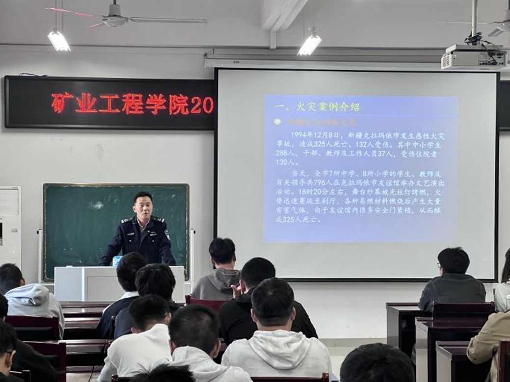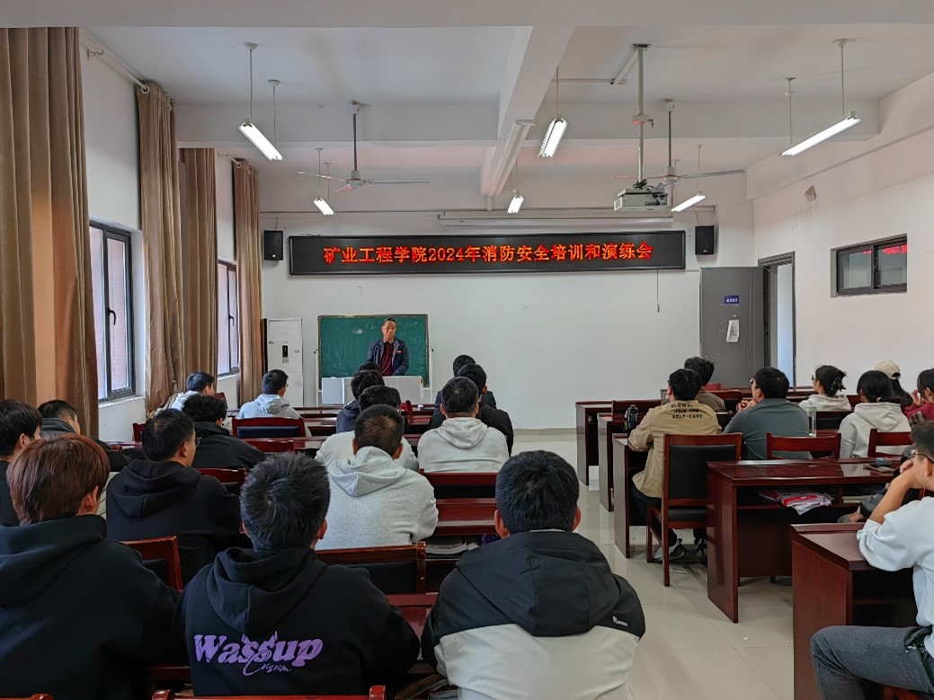 为增强学生消防安全意识和应急处理能力,筑牢校园消防安全防线,在第33个全国消防安全日来临之际,11月5日下午,矿业工程学院邀请保卫处技防与消防科负责人彭广峰在宁远楼A302开展2024年消防安全培训和演练会,学院本科生和研究生代表参与培训和演练会。