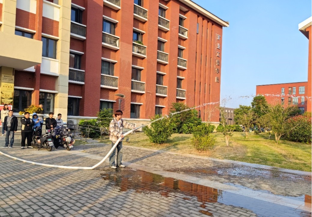 培训教育活动结束后,组织开展了疏散和消防演训活动。通过近距离体验和实际操作灭火栓与灭火器,为学生扣上了第一粒“安全扣”,有效地提升了学院学生的消防安全意识和应急避险能力,为开启新的大学学习和生活奠定了坚实的基础。