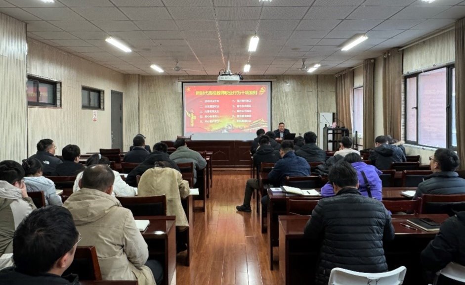 坚守育人初心,筑牢师德底线。学院党委书记常聚才给全体教工党员上师德师风教育专题党课,重点讲述了习近平总书记关于师德师风的重要论述、《新时代高校教师职业行为十项准则》、《研究生导师指导行为准则》以及《安徽理工大学党员干部“八小时外”行为监督管理办法(试行)》等内容,要求学院全体教师自觉坚持师德师风第一标准,先“立己德”后“树人德”,争做“四有”好老师。