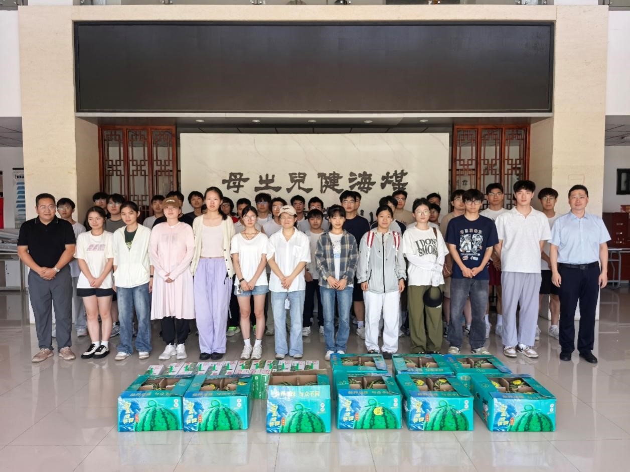 活动中,学院党委副书记田秋实与同学们亲切交流,细致询问大家的复习进度、作息安排及生活需求,对同学们不畏酷暑的拼搏精神给予充分肯定。副院长陈登红则结合自身经验与典型案例,围绕高效复习方法、劳逸结合技巧等方面为同学们支招,鼓励大家锚定目标、科学规划,在专注学习的同时兼顾身心健康,共同营造积极向上的备考氛围。随后,老师们为同学送上西瓜、牛奶等解暑慰问品,炎炎夏日里的这份关怀,让留校学子倍感暖心。