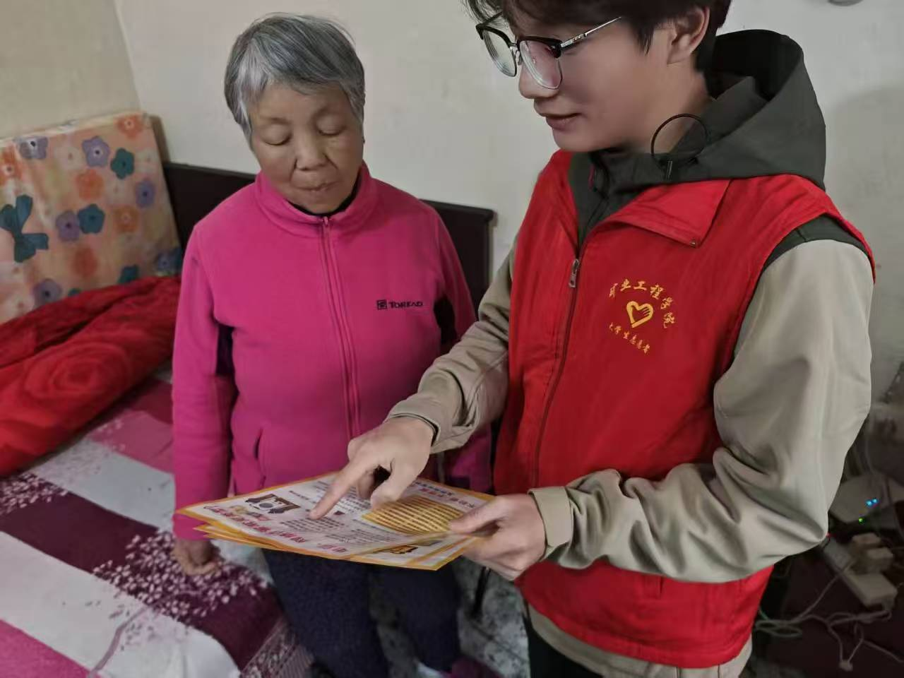 志愿者们主动走进淮南市九久夕阳红老年公寓,耐心陪伴老人谈心聊天、整理居所,为老人送去温暖与关怀;深入洞泉社区,协助工作人员上门为居民安装烟雾报警器,用细致行动守护群众生命安全;同步开展学业帮扶志愿活动,精准对接学业困难学生需求,帮助其查漏补缺、夯实学业基础,用温情传递志愿力量。