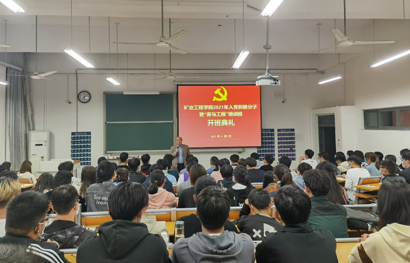为深学笃用习近平新时代中国特色社会主义思想和党的十九大精神,认真贯彻落实习近平总书记关于青年工作的重要思想,11月5日晚,矿业工程学院在天工南106教室举行2021年“青马工程”培训班。院学生会、研究生会主要干部和新生班级学生干部60余人参加本次培训班。学院党委书记盛鹏飞参加开班式并做主题报告,学院党委副书记田秋实主持开班式。