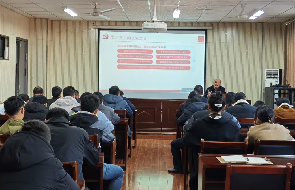 11月26日下午,矿业工程学院举行“中国共产党百年历史征程”党史学习专题报告会。学院党委委员、院班子成员和师生党员80余人参加了此次报告会。报告会由院党委书记盛鹏飞主讲。