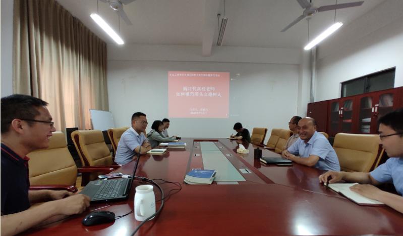 7月1日下午,矿业工程学院党委书记盛鹏飞以《新时代高校老师如何模范带头立德树人》为支部讲授专题党课。他围绕三点展开讲述:一是作为高校老师的党员同志如何在思想和行动上自觉向党中央靠拢,如何将习近平新时代中国特色社会主义思想进头脑、进教材、进课堂,为党育人、为国育才;二是交通工程系教工党支部作为新成立的支部,在成长过程中势必遇到各种问题,需要党员同志深入学习党的理论,学会用发展的眼光看待问题、解决问题;三是交通工程教工党支部要对标“样板党支部”建设标准,找准特色、自我加压,努力打造交通特色的品牌支部。