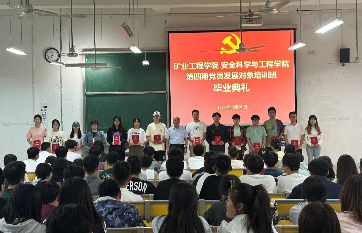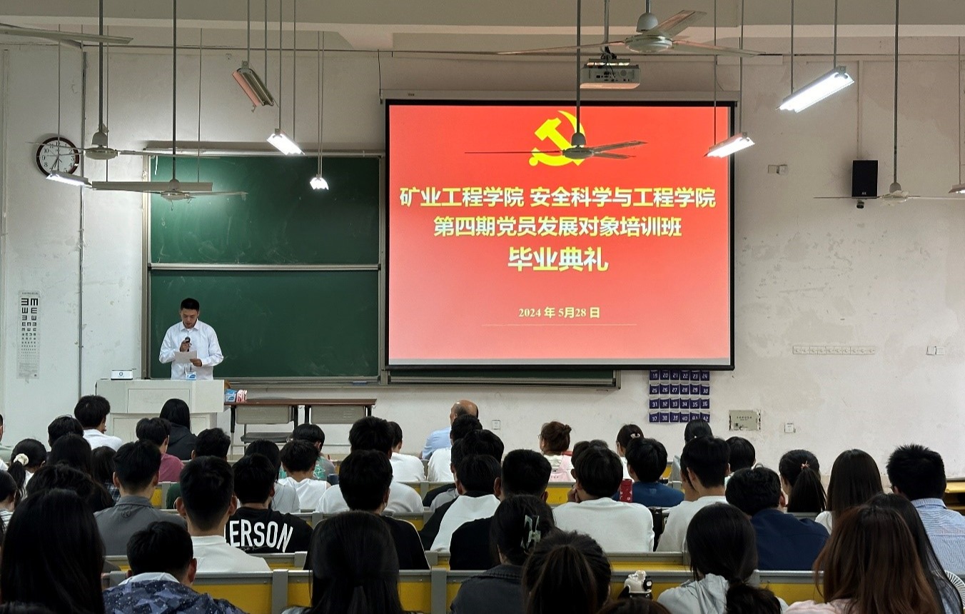5月28日晚,矿业工程学院、安全科学与工程学院分党校在明理105教室举行第四期党员发展对象培训班结业仪式。矿业工学院党委书记、分党校校长盛鹏飞出席结业典礼,典礼由安全科学与工程学院党委副书记曹宣明主持,两学院辅导员及176名学员参加结业仪式。