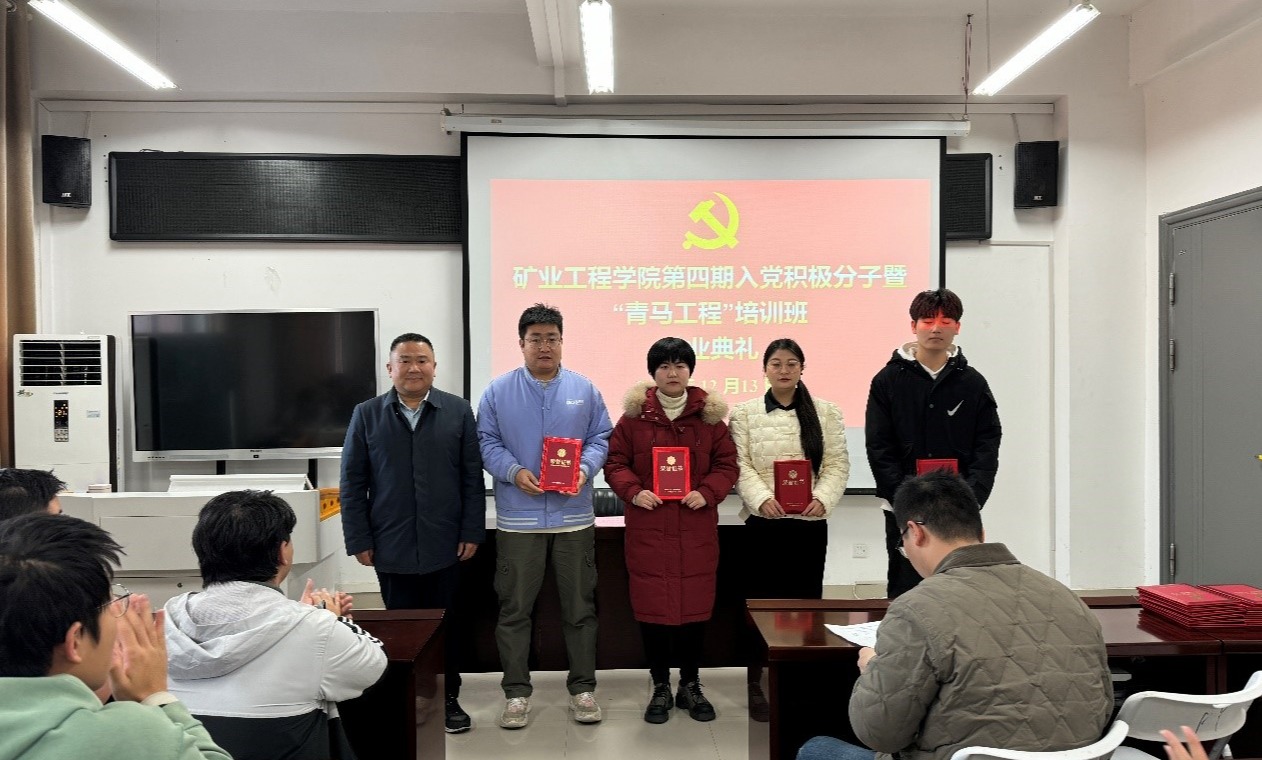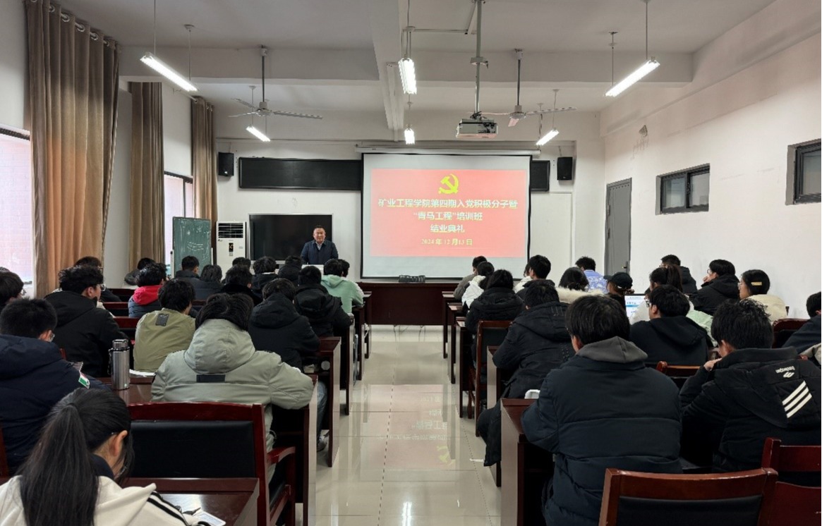 12月13日下午,矿业工程学院分党校在宁远楼A302教室举行2024年入党积极分子暨“青马工程”培训班结业典礼。学院党委书记常聚才,各学生党支部书记、辅导员,入党积极分子培训班和“青马工程”培训班学员参加结业典礼。
