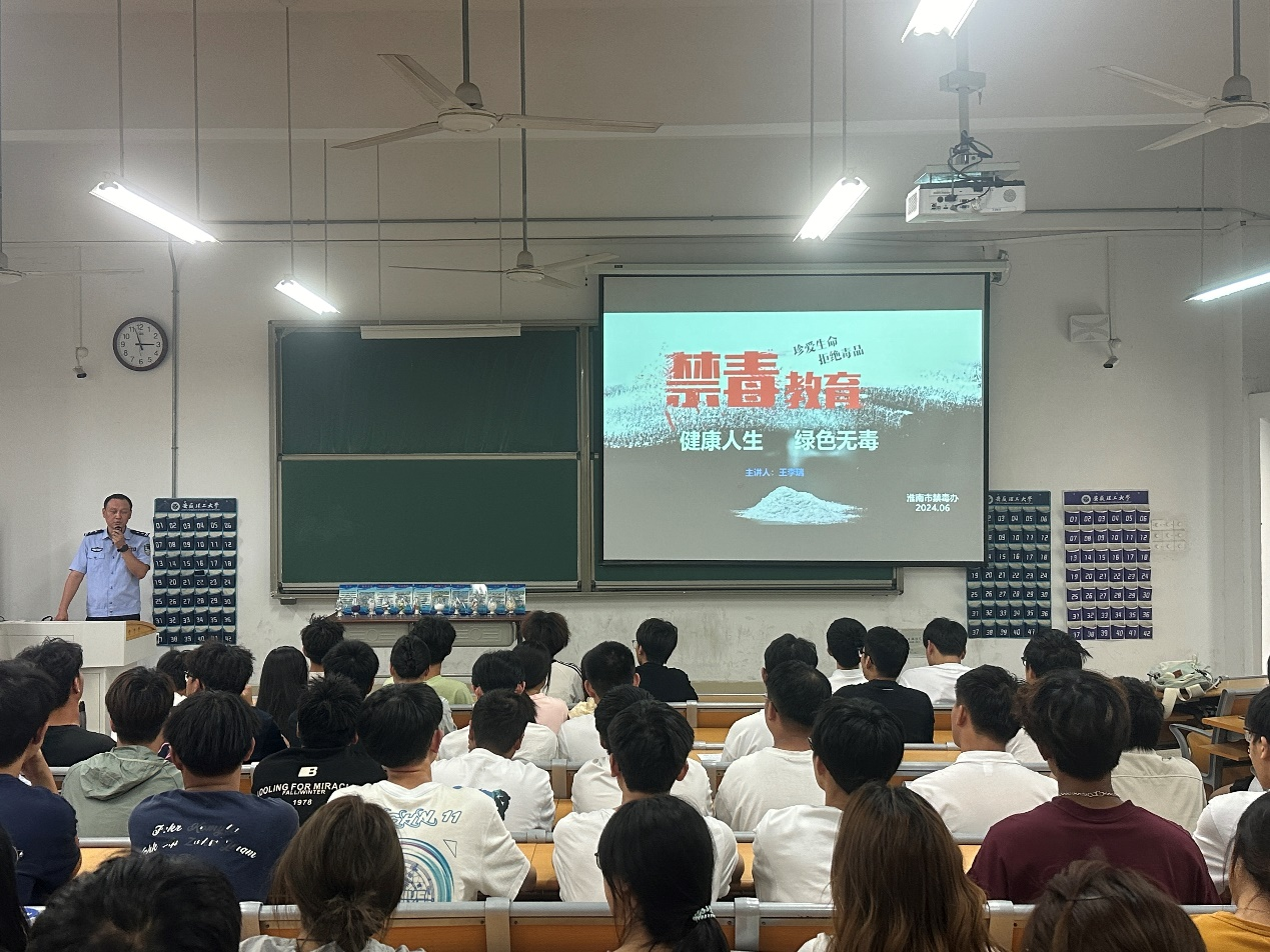 在“6.26”国际禁毒日即将到来之际,为了进一步提高广大师生的禁毒意识和拒绝毒品的能力,6月18日,矿业工程学院邀请淮南市公安局禁毒支队宣传大队大队长王李瑞、田家庵区禁毒办副主任朱亚军一行四人来校共同开展以“珍爱生命、远离毒品”为主题的禁毒宣传教育活动。