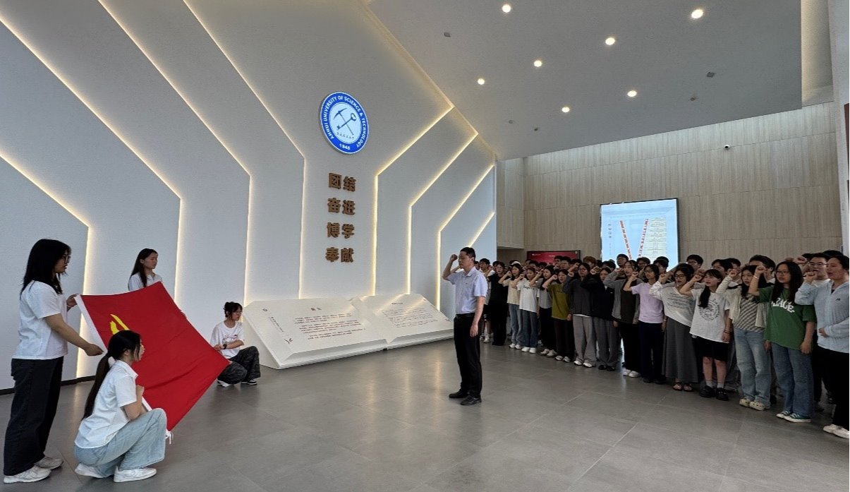 为深化学习教育成果,强化毕业生党员责任担当,6月10日,矿业工程学院组织毕业生党员前往校史馆开展主题党日活动。在讲解员的带领下,大家首先参观校史馆,通过珍贵史料与实物陈列,深入了解学校发展历程与精神传承。随后,全体党员在校史馆前庄严列队,学院党委副书记田秋实以“传承红色基因,勇担时代使命”为题,为毕业生党员讲授最后一次党课,结合党史校史案例,激励党员们在新征程中践行责任担当。最后,在田秋实的带领下,毕业生党员面向党旗,重温入党誓词,铿锵誓言彰显初心使命。此次活动通过沉浸式教育,让毕业生党员在离校前接受思想洗礼,筑牢信仰之基。