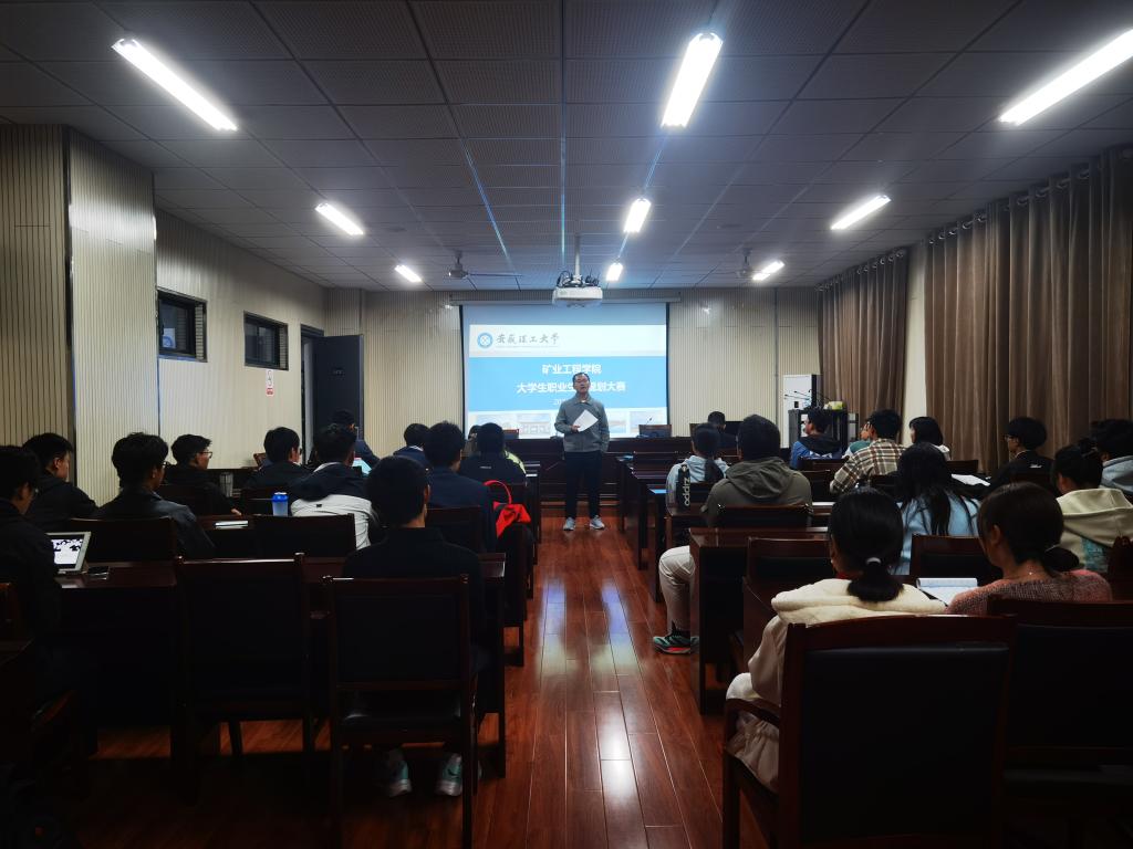 11月7日晚,矿业工程学院在宁远楼A410教室举行2023年大学生职业生涯规划大赛。经各年级选拔推荐,前期评审,共有105位同学参加了比赛。