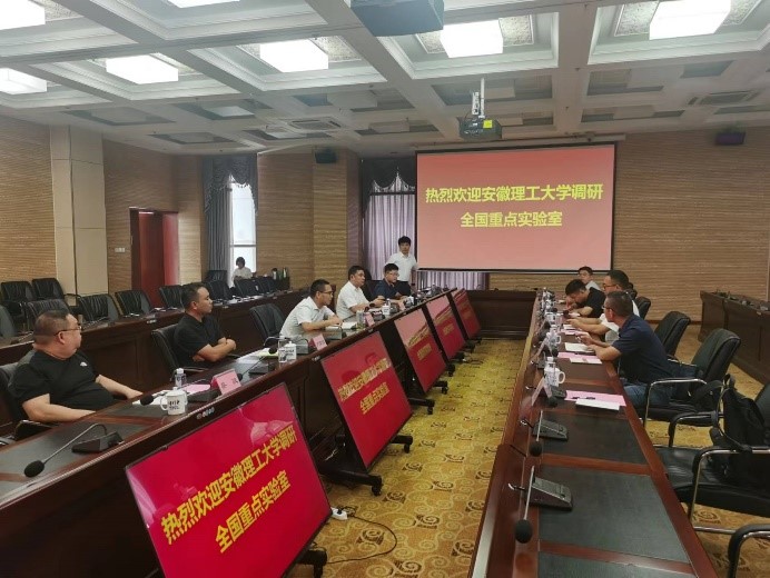 会上,李站国详细介绍了全国重点实验室发展历程、研究方向领域、建设成效。杨科对全国重点实验室的热情接待表示感谢,并详细介绍了安徽理工大学在“双一流”创建、学院招生就业、教学科研进展、学科建设成就及发展规划。双方一致认为依托全国重点实验室启动建设发展契机,加强在学科建设、实验平台共享、学生联合培养、科研合作等方面加强校企合作交流,实现优势互补、合作共赢是非常有必要的。
